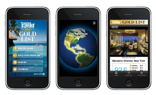 Condé Nast Traveler introduced version 4.8.1 of its Gold List app early last month. It boasts ambitious, well-executed design, with potential to boost brand interaction and drive revenue. Though there are UX flaws, we expect future versions of this app to evolve into a viable, revenue-churning machine.